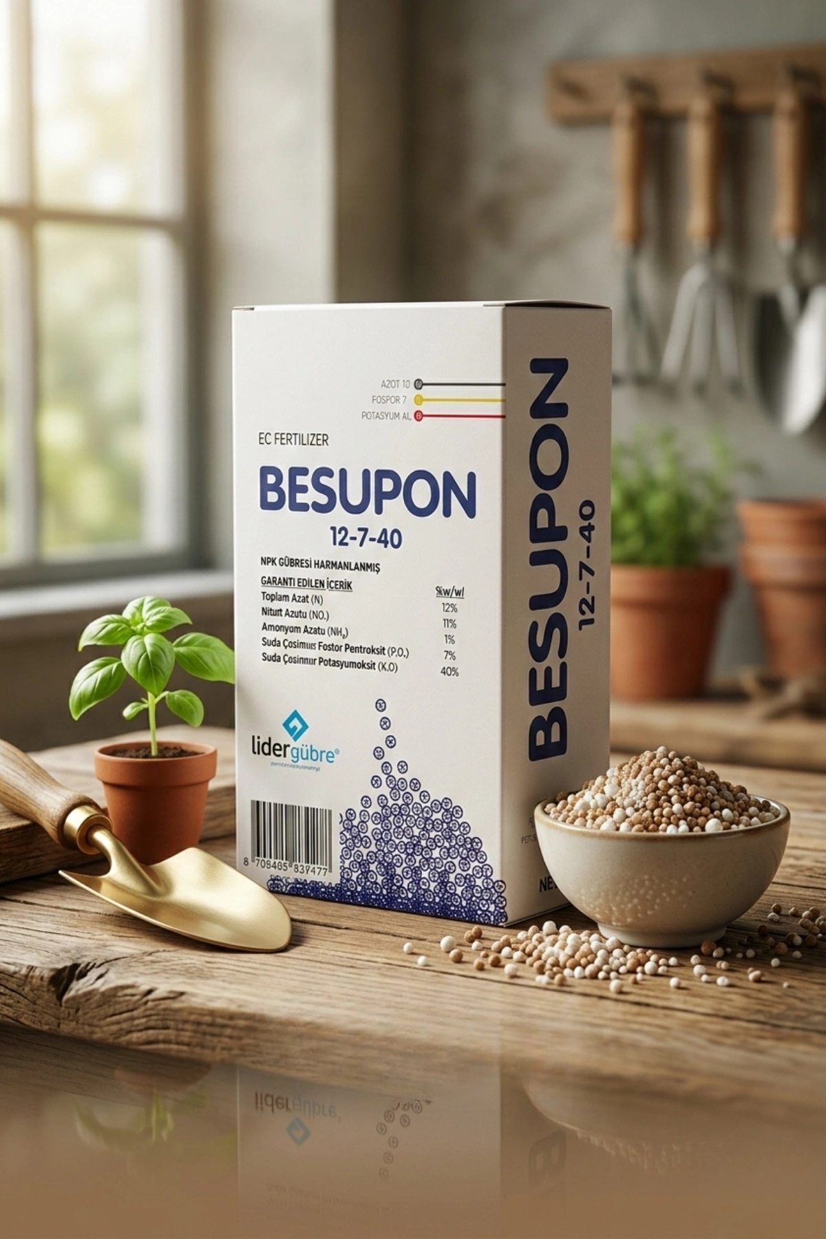 Besupon 12-7-40, yüksek potasyum içeriği ile bitkilerin meyve büyütme, olgunlaşma ve kalite dönemleri için özel olarak harmanlanmış profesyonel bir bitki besleme gübresidir. İçeriğindeki %40 Potasyum (K) oranı, ürünlerin şeker oranını, rengini, raf ömrünü ve aromasını doğrudan artırmak amacıyla tasarlanmıştır.