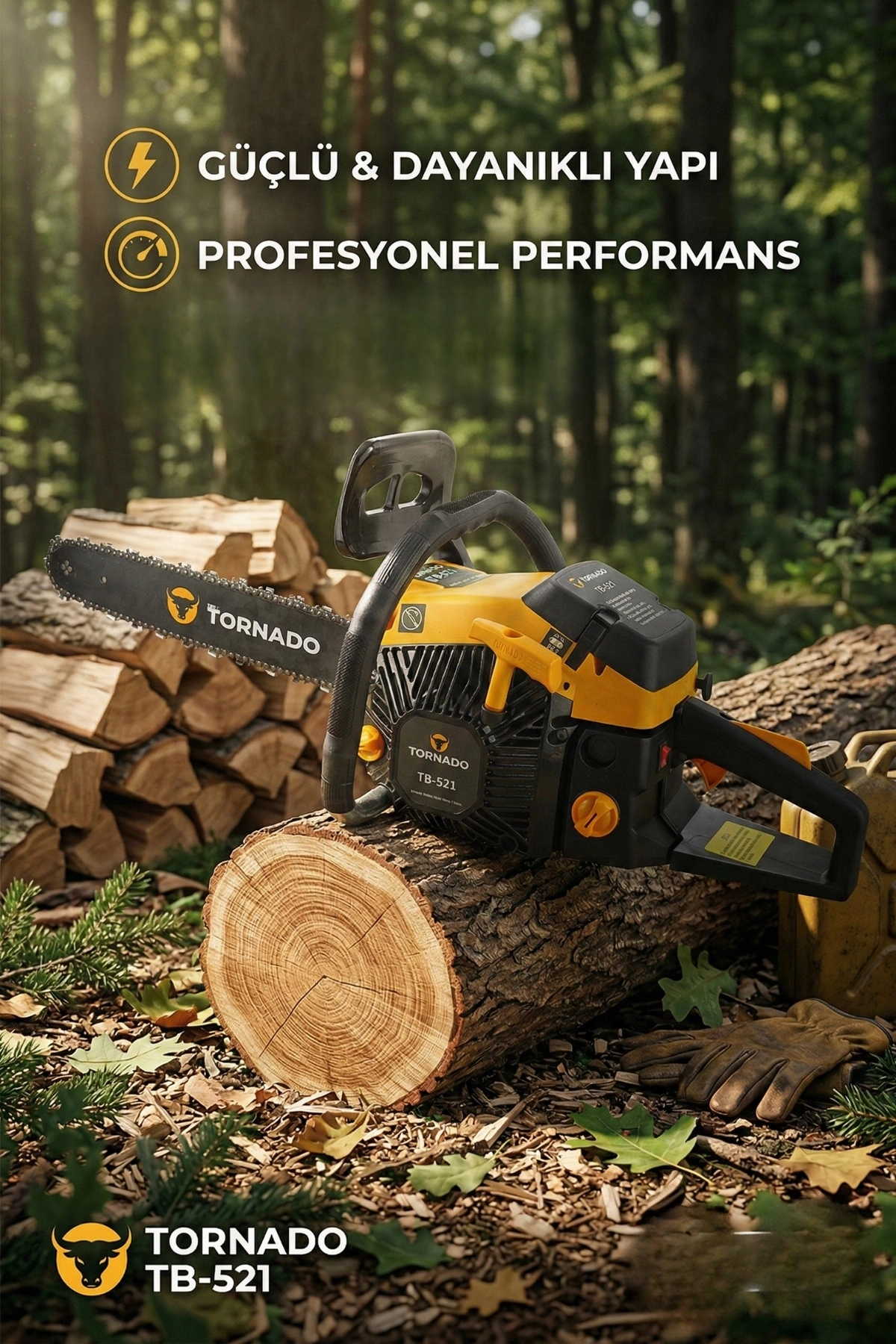 Bull Tornado TB-521, profesyonel kesim ihtiyaçları ve yoğun bahçe işleri için geliştirilmiş, yüksek tork kapasiteli ve dayanıklı bir motorlu testeredir. 52 cc silindir hacmine sahip güçlü motoru ve hafifletilmiş gövde yapısı ile en sert kütüklerde dahi maksimum kesim hızı ve kullanıcı konforunu bir arada sunar.