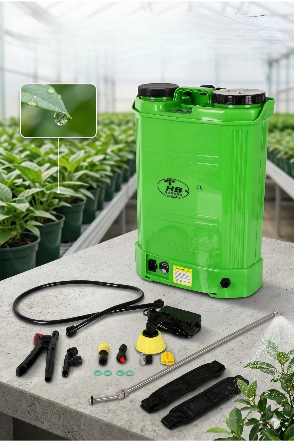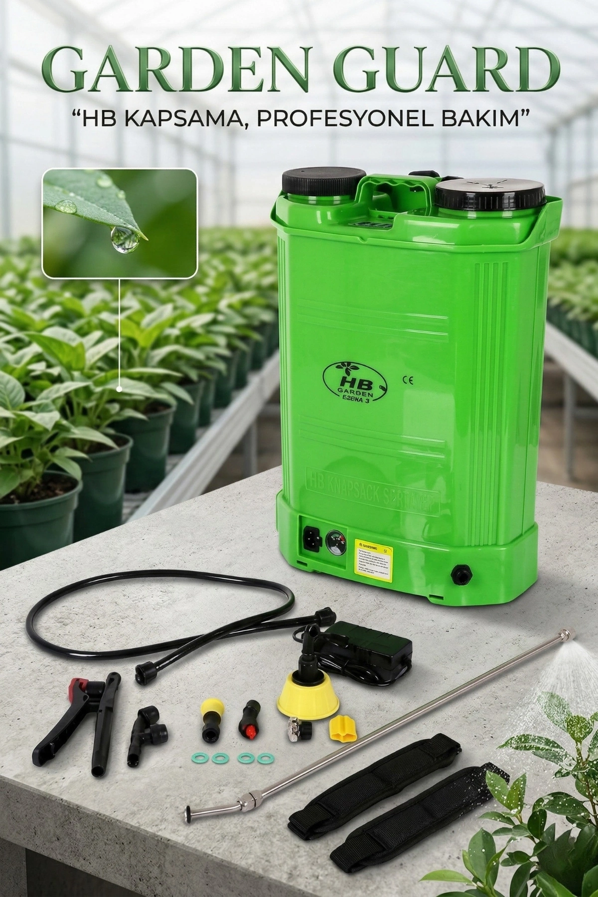 HB Garden akülü ilaçlama makinesi, 5,5 kg hafif gövde yapısı ve yüksek batarya performansıyla bahçe bakımı ve dezenfeksiyon işlemlerinde profesyonel çözümler sunar. Darbeye, güneşe ve kimyasal maddelere dayanıklı özel gövdesi sayesinde uzun ömürlü kullanım sağlar.