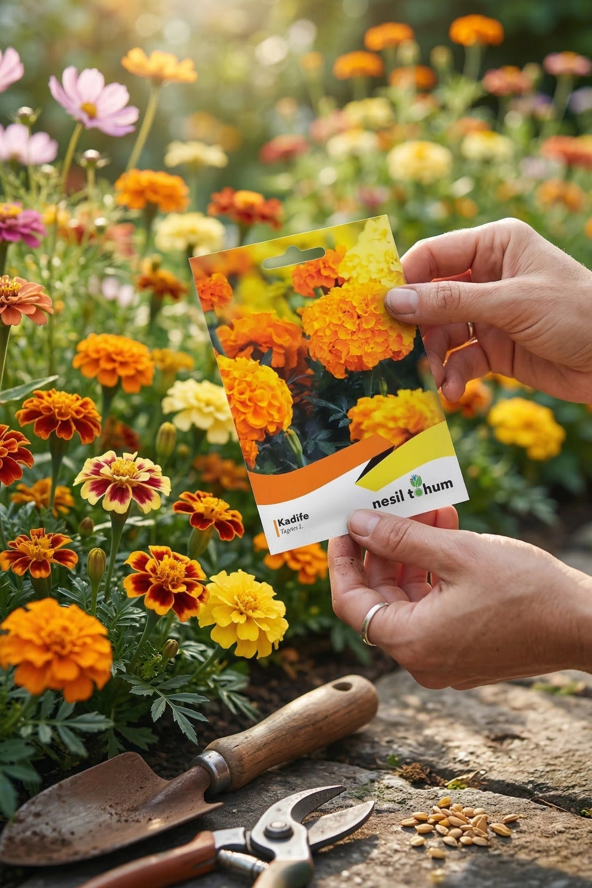 Bahçelerinizde ve balkonlarınızda sarı, turuncu ve kahverengi tonlarıyla sıcak bir atmosfer yaratan, yüksek çimlenme oranına sahip kaliteli kadife çiçeği tohumu setidir. Tagetes türü, yoğun çiçek yapısı ve kendine has kokusuyla hem görsel bir şölen sunar hem de bahçenizdeki diğer bitkiler için doğal bir koruyucu görevi üstlenir.