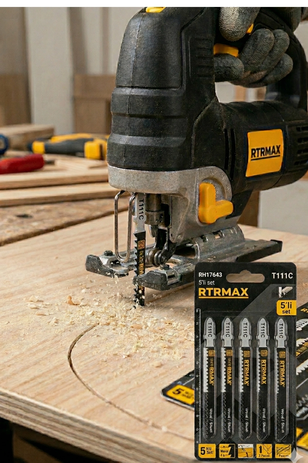 Rtrmax RH17643 T111C Dekupaj Ağzı; ahşap ve benzeri malzemelerde düz ve standart kesimler yapmak için tasarlanmış 5’li set halinde sunulan bir kesim aparatıdır. Dekupaj makineleri ile uyumlu yapısı sayesinde hem hobi hem de profesyonel kullanım için uygundur.