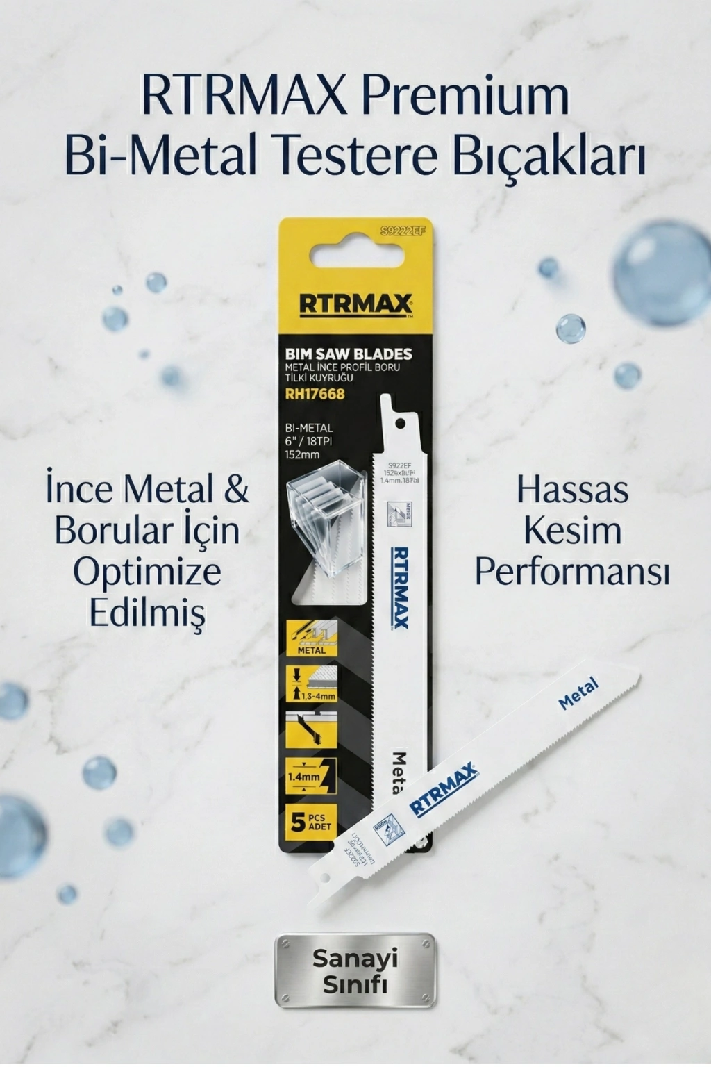 RTRMAX RH17668 Metal İnce Profil Boru Tilki Kuyruğu 150 mm, ince metal profiller, borular ve sac malzemelerde temiz ve kontrollü kesim yapmak için tasarlanmış dayanıklı dekupaj testere bıçağıdır. Özel tilki kuyruğu diş yapısı sayesinde metal yüzeylerde kesim sırasında düzgün ilerleme sağlar ve minimum çapakla sonuç verir. Standart dekupaj makineleri ile uyumlu yapısıyla farklı işler için uygun çözüm sunar.