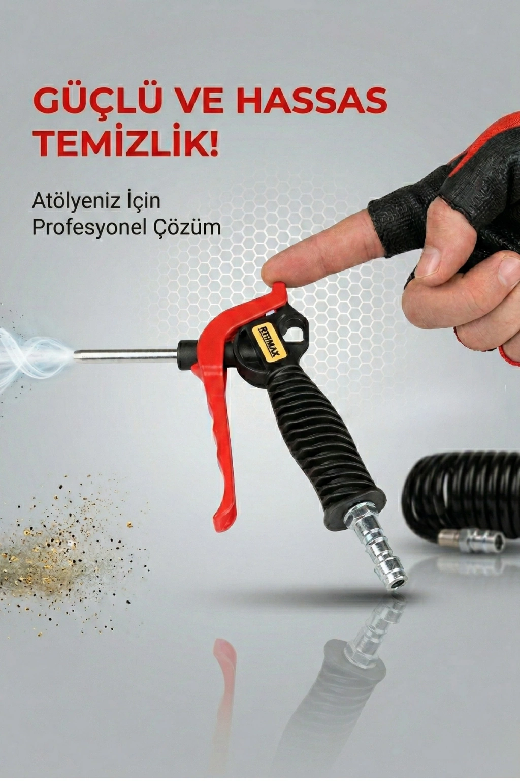 RTRMAX RH20805 Hava Tabancası Kısa, kısa uçlu hava üfleme tabancası yapısıyla sıkışmış toz, talaş ve sıvı artıkların temizlenmesinde yüksek performans sunar. Dayanıklı metal gövde ve ergonomik tasarım sayesinde uzun süreli kullanımlarda bile konfor sağlar. Endüstriyel bakım, otomotiv ve genel temizlik işlemlerinde etkili sonuç verir.