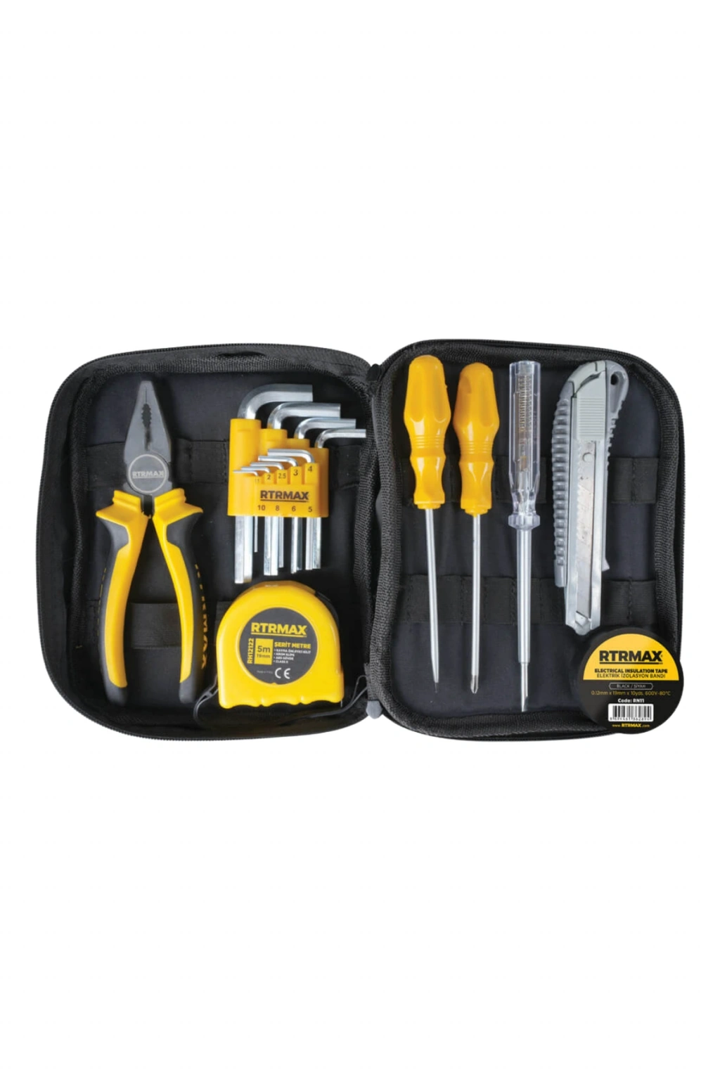RTRMAX RTK1010 El Aleti Seti 17 Parça, ev, atölye ve atölye dışı tamirat işlerinde pratik ve eksiksiz bir çözüm sunar. Temel el aletlerinin bir arada bulunduğu bu set, günlük montaj, onarım, bakım ve hobi uygulamalarında çok yönlü kullanım imkanı sağlar.