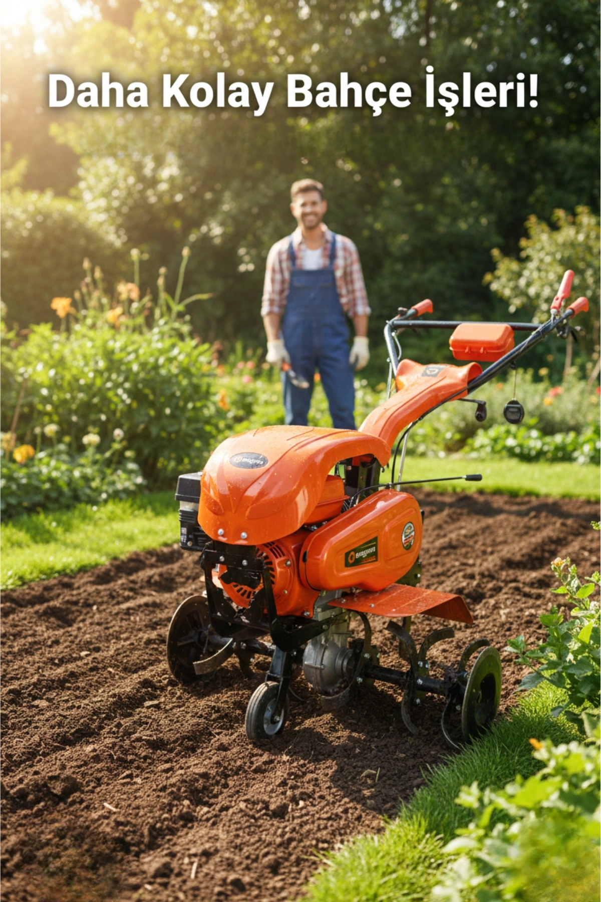 Güçlü 7 beygir gücünde benzinli motor, zorlu toprak işleme görevlerini hızlı ve verimli şekilde yerine getirmek için yeterli gücü sağlar.